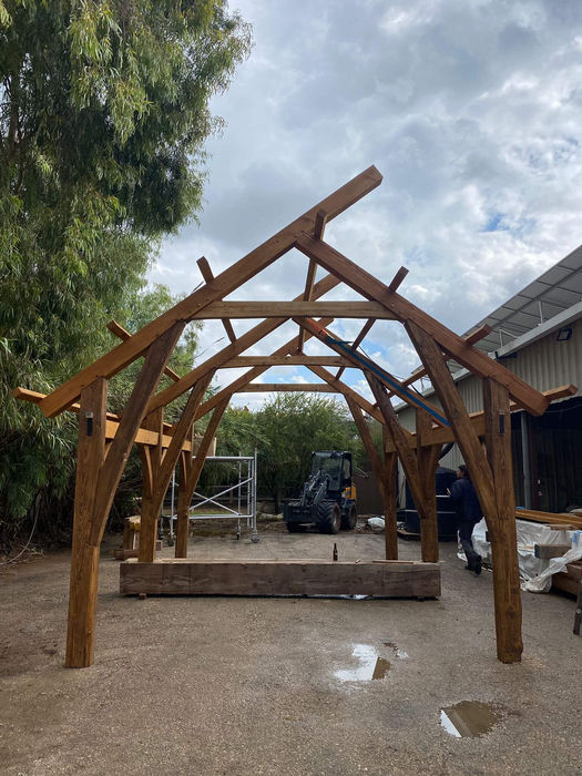 מבנה בשילוב עץ ברוש מקומי דאגלס פייר. פרויקט סיום זה תרגלו המשתתפים בקורס בניית סגמנטים שלמים וקשירתם באמצעות מחברי אלכסון וקורות קושרות סטנדרטים.